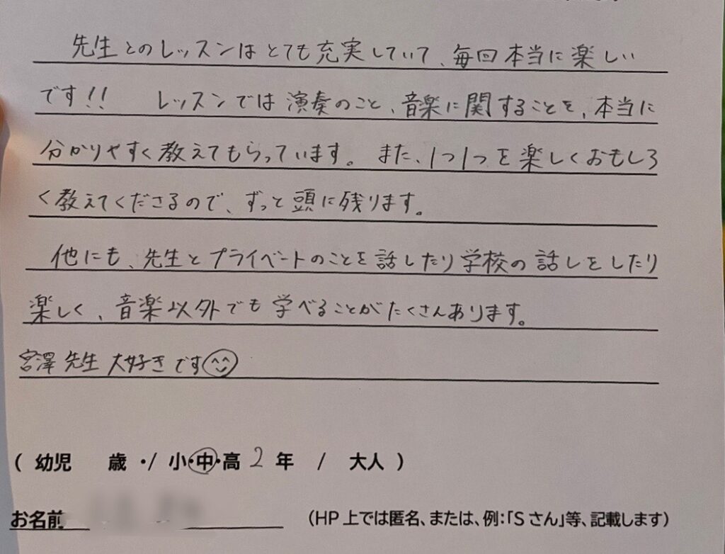 レッスンでは演奏のこと、音楽に関することを本当に分かりやすく教えてもらっています。
